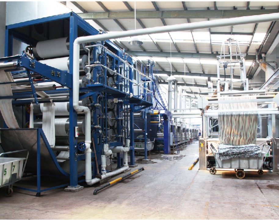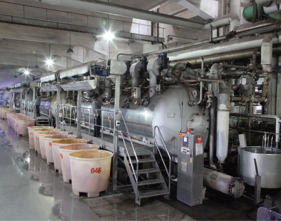 主要印染加工各類全棉、T/R、T/C及棉裘系列各種印花染色產品,有韓國進口定型機6臺、長車軋染線3條、配套前道蒸漂絲光